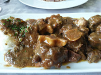 Comenzamos con dos versiones de buen bacalao, a la brasa y con nata. Continuamos con otra especialidad de la casa, el pulpo, si nos llevamos una sorpresa con el delicioso y tierno rebozado, el ao forno resulto espectacular de textura y sabor. Bien la lubina y deliciosas como siempre las patatas de acompañamiento, correctos postres y carta de vinos algo triste, solo tenia una marca de Oporto, Porto Cruz, pero era la bodega que pagaba con su publicidad el montaje del velador y claro..., buen blanco y pobre el Twany, error por su parte dejarnos las botellas en mesa... que tuvieron el detalle de no cobrar mas que un par de copas. Buen precio y estupendo servicio.